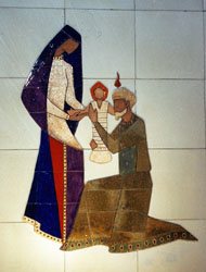 ![]() CANTIQUE DE SIMÉON Mosaïque en céramique, or et argent 300*200 cm Eglise St.-Nicolas de Flüe Lausanne (Suisse) |