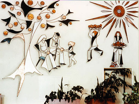 ![]() PARABOLE DE LA VIGNE ET DE L'IVRAIE Fer forgé, émaux sur cuivre et verre. Temple d'Yvorne (Suisse) |